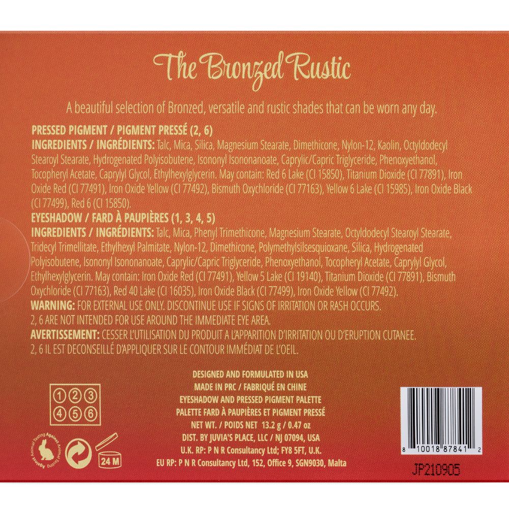 The Bronzed RusticPalette is a show-stopping day to night palette featuring rich. handpicked. spicy rustic shades. Each palette is mixed with beautiful golden colors that can be used to create stunning bronzed looks.